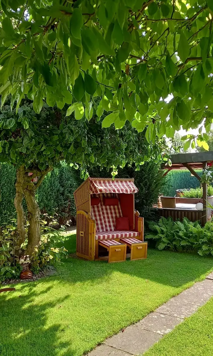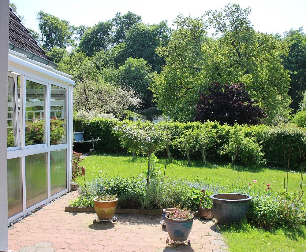 Nach dem Frühstück im großen, beheizten Wintergarten lehnen Sie sich nochmal ganz entspannt zurück und sehen den Eichhörnchen, die die Bäume hinaufhuschen zu oder lauschen dem klopfenden Specht... Wie wäre es im Anschluss daran mit einem Spaziergang durch Ihren ca. 11.600 m² großen, verwilderten Park? Hier gibt es schließlich immer etwas zu entdecken!