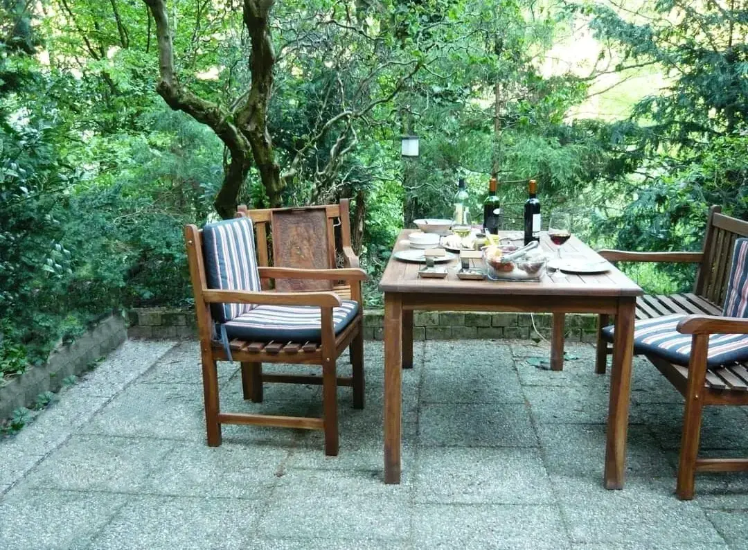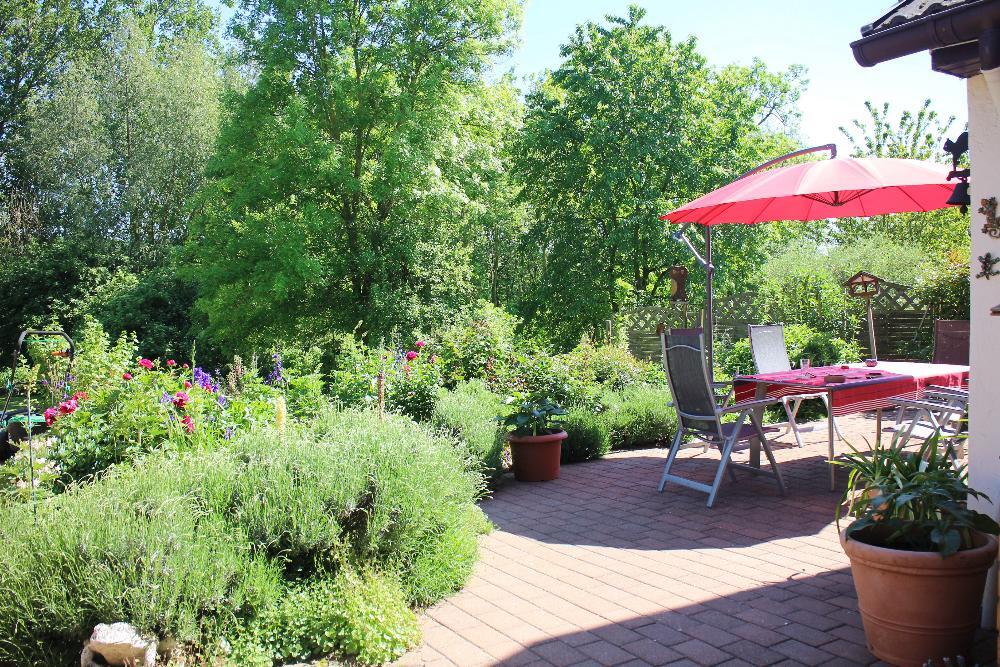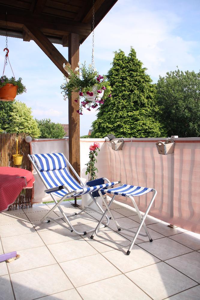 auf der geschützten Außenterrasse bei einem Gläschen Wein ausklingen lassen.