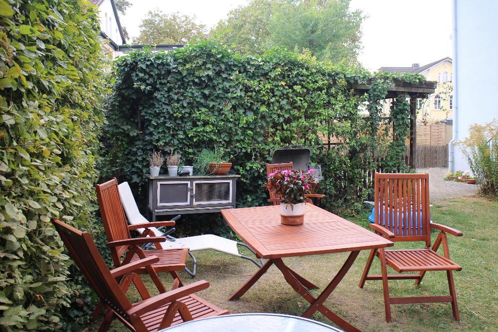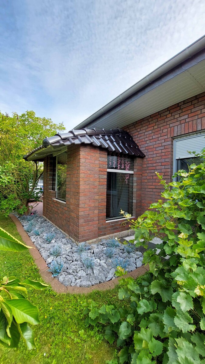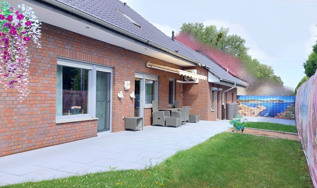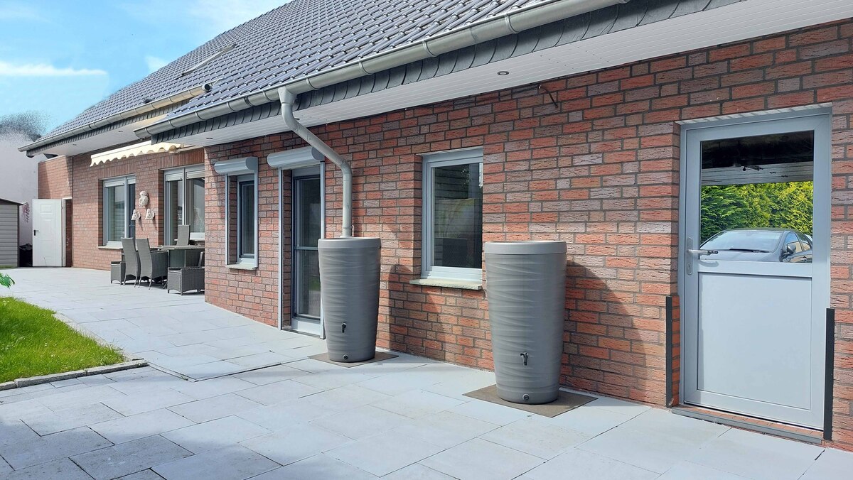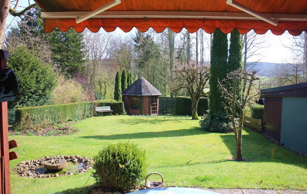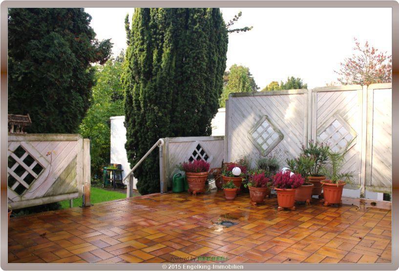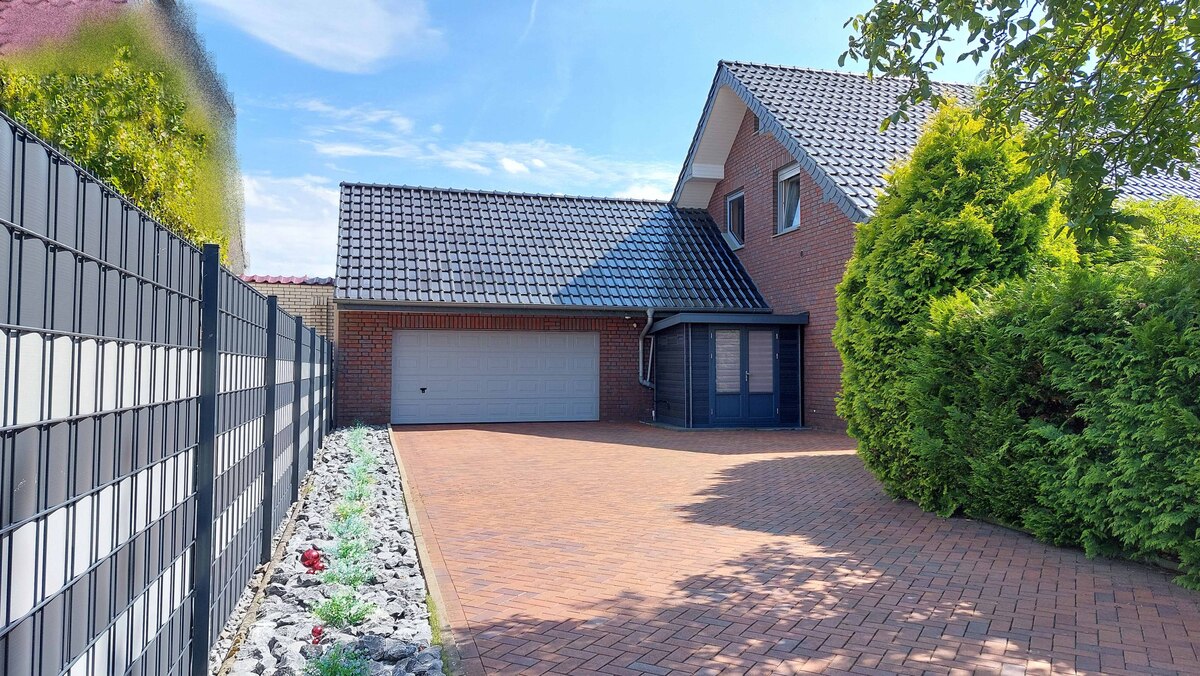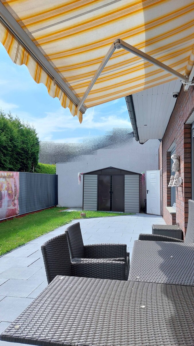 Die einladende Terrasse mit einem kleinen, hinteren Gartenanteil verläuft übrigens über die komplette Ostseite. Sie ist ein idealer Platz, um mit der Familie oder mit Freunden zusammenzusitzen – sei es zum Grillen oder einfach nur für eine Tasse Kaffee. Natürlich haben Sie hier noch ausreichend Platz für Ihre Hochbeete, einen Pool oder einen kleinen Sandkasten! Dieser Bereich ist vollständig eingezäunt.