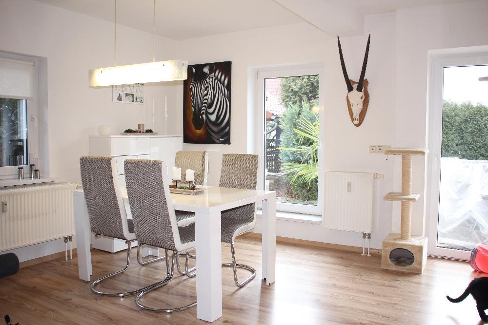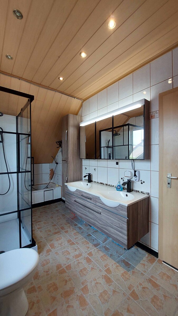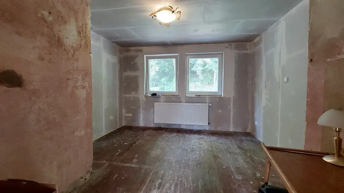 Angefangen mit der Elektrik im Wohnbereich ging es später auch mit dem Austausch der Fenster (Dachgeschoss), inkl. der Haus- und den Nebeneingangstüren, der Außen- und Innendämmung des Gebäudes sowie der Kernsanierung des Dachgeschosses weiter. Letzteres wartet allerdings noch auf Ihre kreative Vollendung.
