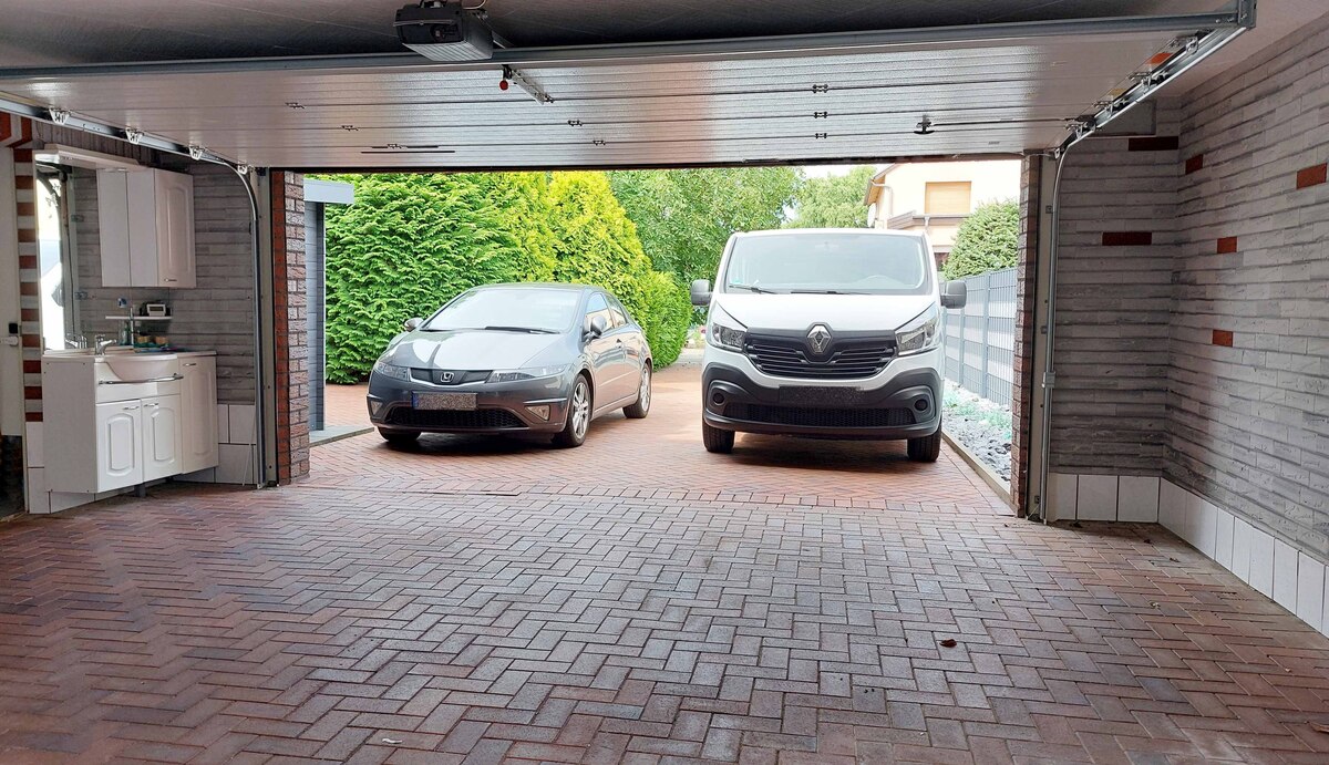Eine außergewöhnlich geräumige Doppelgarage (ca. 31 m²) bietet auch Ihren Fahrzeugen einen trockenen und sicheren Platz. Hier befindet sich auch noch der Hausanschlussraum mit der Heizung.