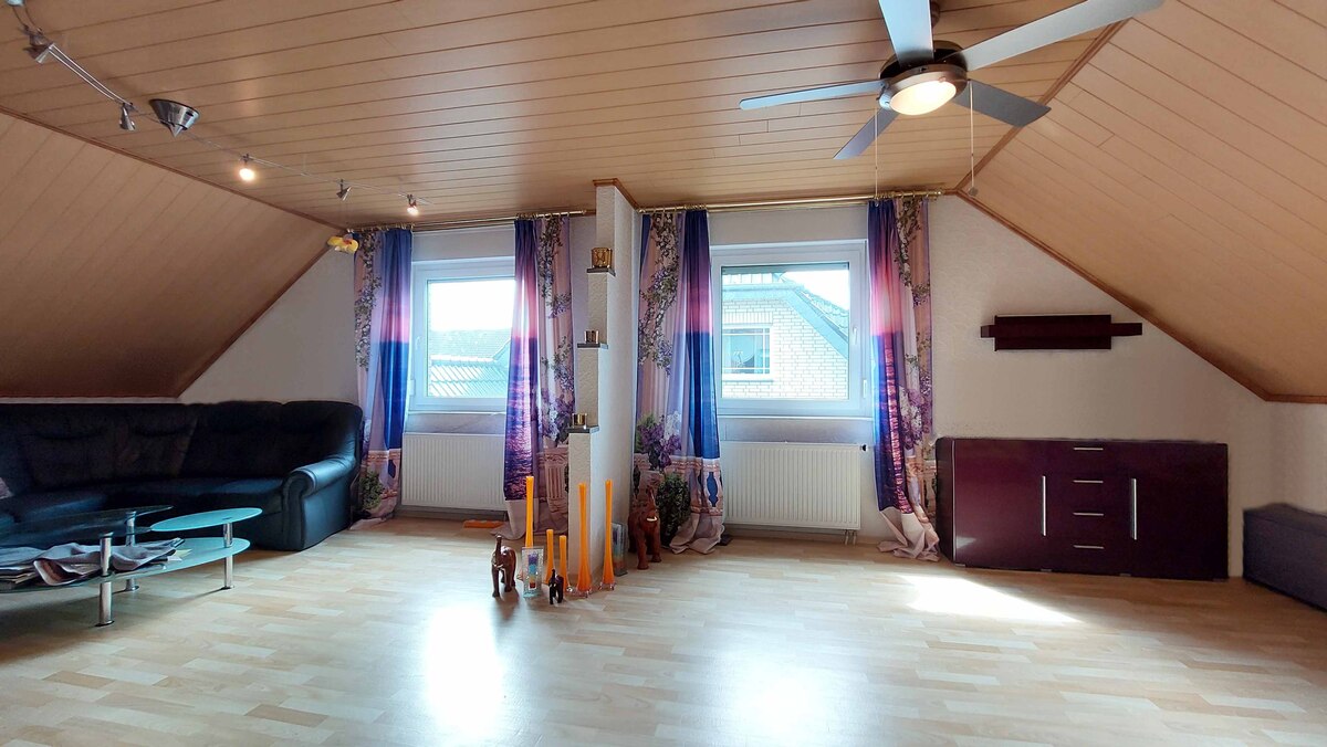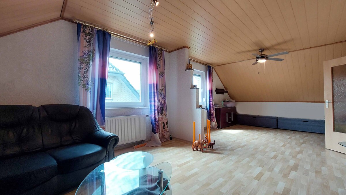 Auch wenn das Haus als Einfamilienhaus gebaut worden ist, bestünde nach Rücksprache mit dem Bauamt – da im Dachgeschoss Anschlüsse für eine Küche und auch ein vollständiges Bad vorhanden sind – die Möglichkeit, zumindest eine Einliegerwohnung einzurichten. Mit wenig Aufwand könnte daraus aber auch eine abschließbare Wohnung entstehen.