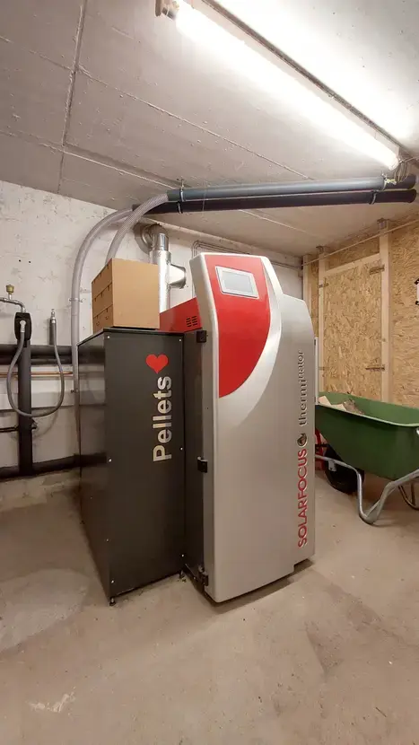 Zuletzt (2022) erfolgte der Einbau der neuen Heizung welche mit Pellets oder auch mit Stückholz betrieben werden kann.