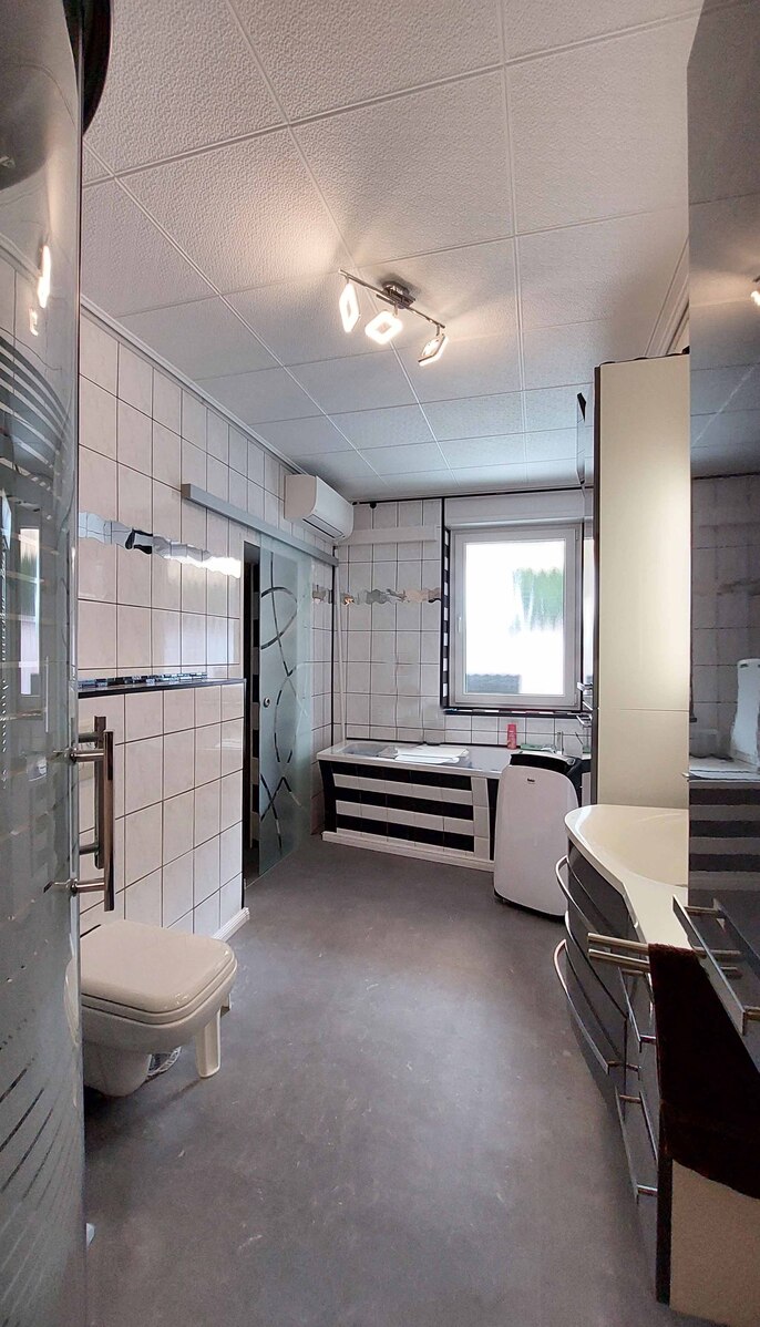 Weiterhin verfügen mehrere Räume des Hauses über eine Klimaanlage. Im Erdgeschoss sorgt eine Fußbodenheizung in Flur, Küche, Wohnzimmer und Bad für angenehme, aufsteigende Wärme, während die anderen Räume wie auch das Dachgeschoss mit Heizkörpern ausgestattet sind.
